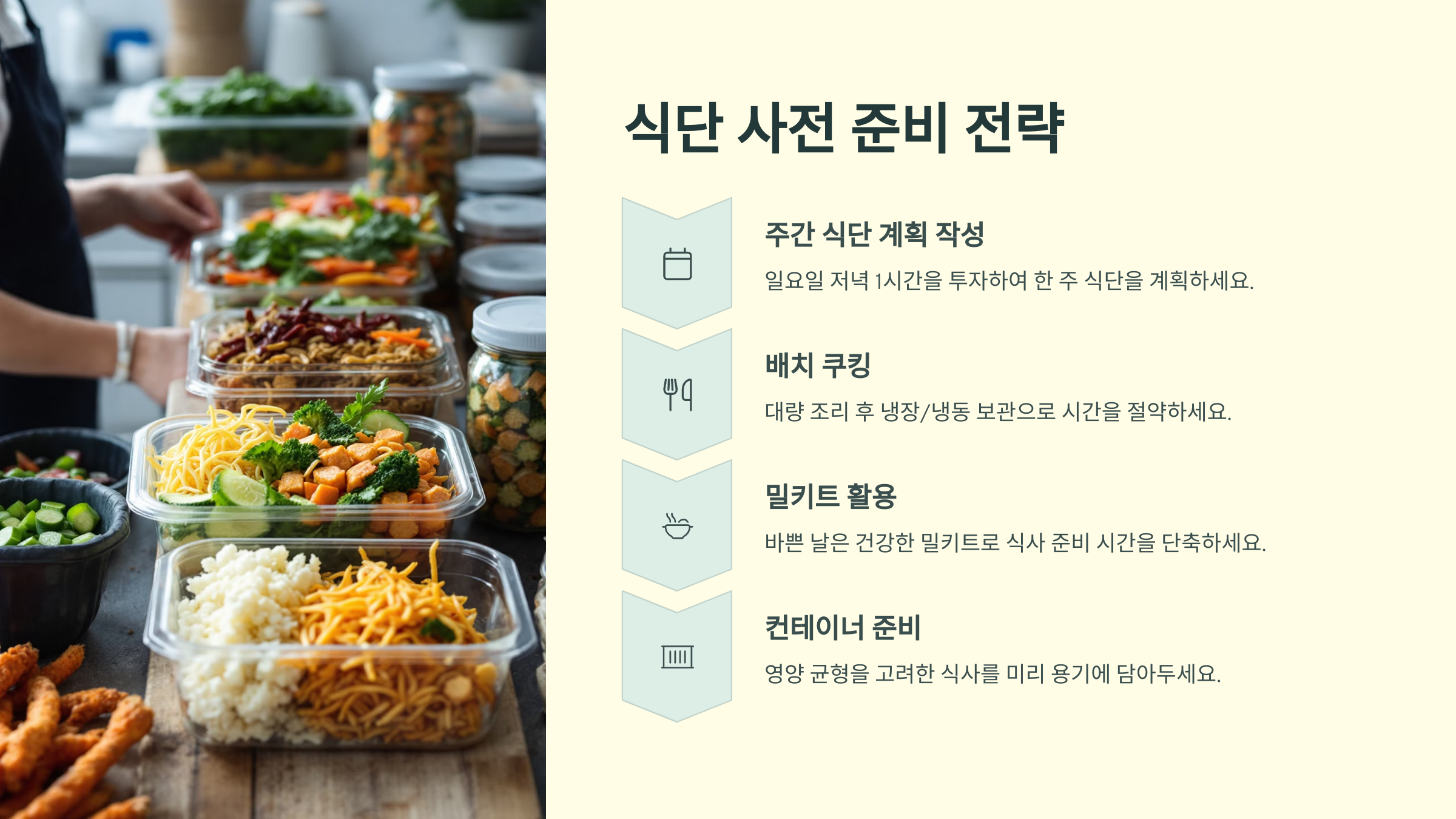 다이어트를 성공으로 이끄는 핵심은 ‘준비’예요. 특히 바쁜 직장인이나 학생들에겐 식단을 매끼 구성하는 게 꽤 번거롭고 어려운 일이죠. 그래서 많은 다이어터들이 ‘밀프렙(Meal Prep)’을 활용하고 있어요. 한 번에 여러 끼니를 준비해두고 냉장·냉동 보관하면서 간편하게 먹는 방식이에요.